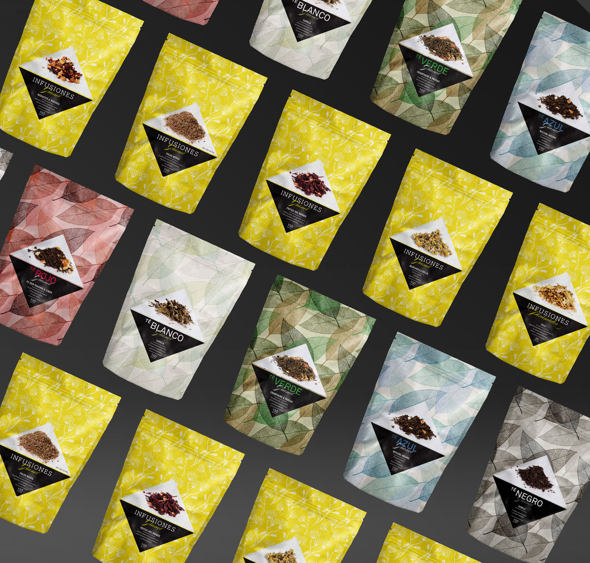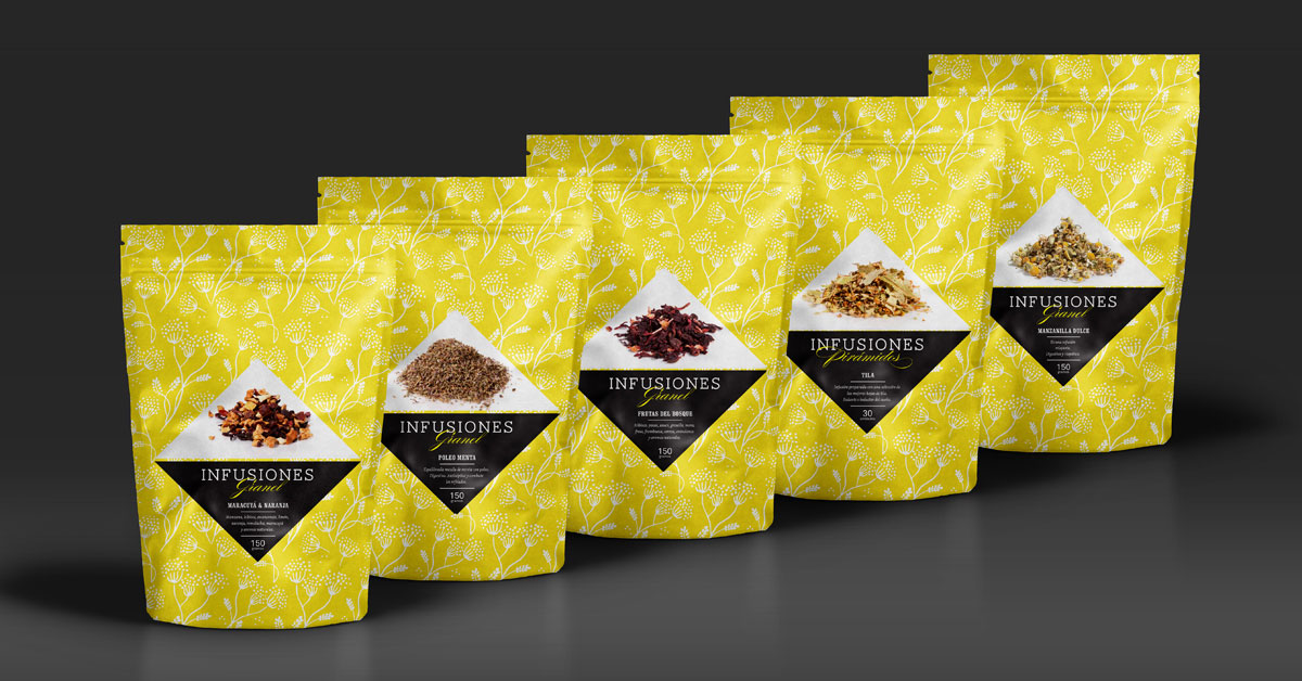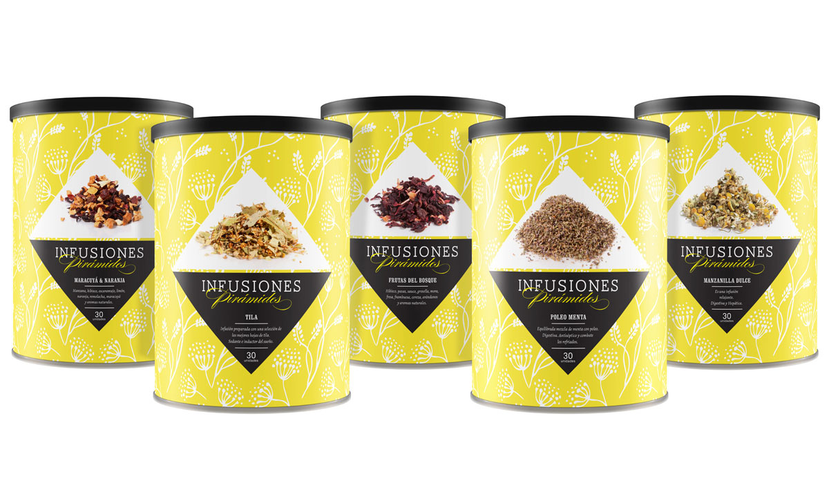 Desarrollo de familia gráfica para té e infusiones. El cliente buscaba que el consumidor pudiera apreciar la calidad del producto, en un envase herméticamente cerrado. Para cumplir este requisito se opté por la utilización de fotografías en la etiqueta, que con la ayuda de texturas, color y tipografías, se logran diferenciar una familia numerosa y que crece constantemente.