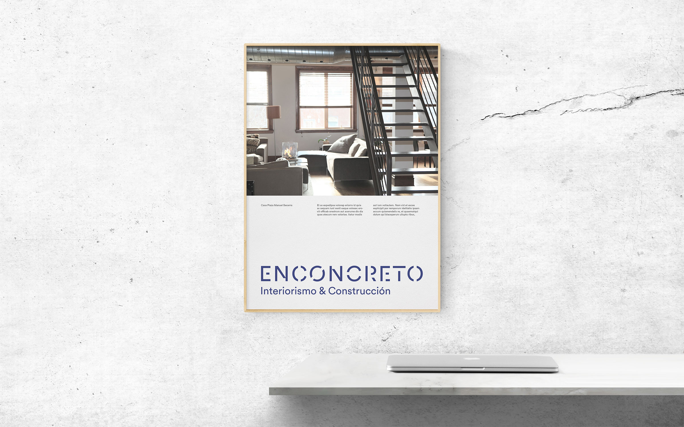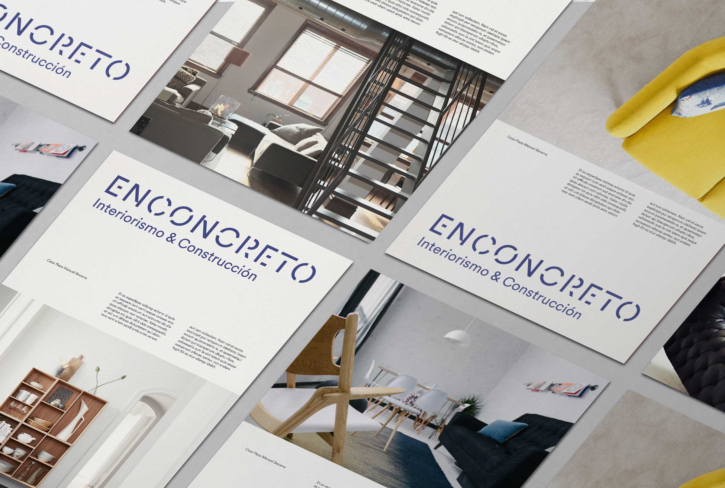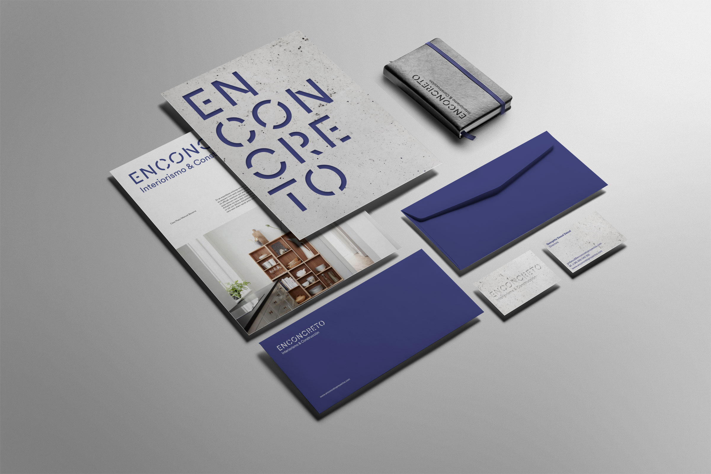 Otro componente importante en la identidad de Enconcreto es el propio naming. El concreto es un material fuerte, resistente que nos transmite conceptos como seguridad o confianza. Pero también significa reducir a lo más esencial. Estos significados ayudaron a definir una identidad simple, moderna y clara. En cuanto a los recursos gráficos, el stencil y la textura del concreto como material son elementos presentes en diversas piezas.