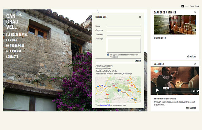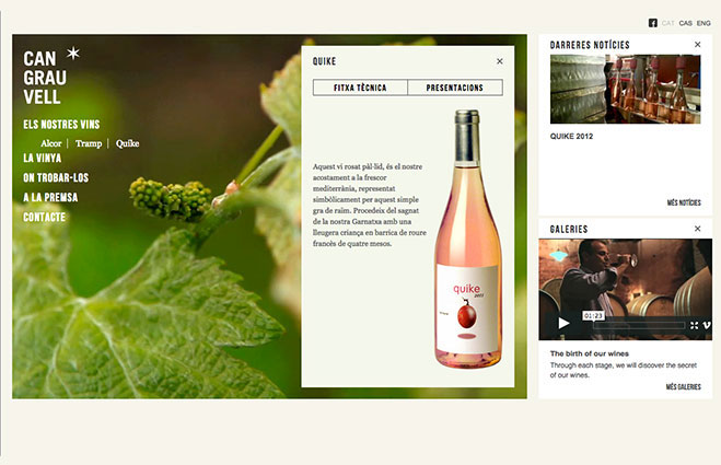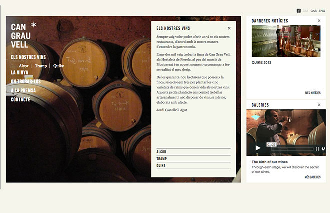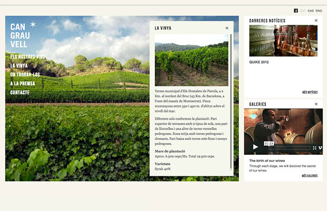 A los pies del Monserrat, en una vieja masía restaurada, un equipo liderado por Jordi Castellvi, trabaja día y noche para criar una familia de varietales de excelente calidad. Como un álbum de fotos, el sitio web se transforma en una carta de presentación de la bodega, sus vinos y sobre todo, sus protagonistas. www.grauvell.cat