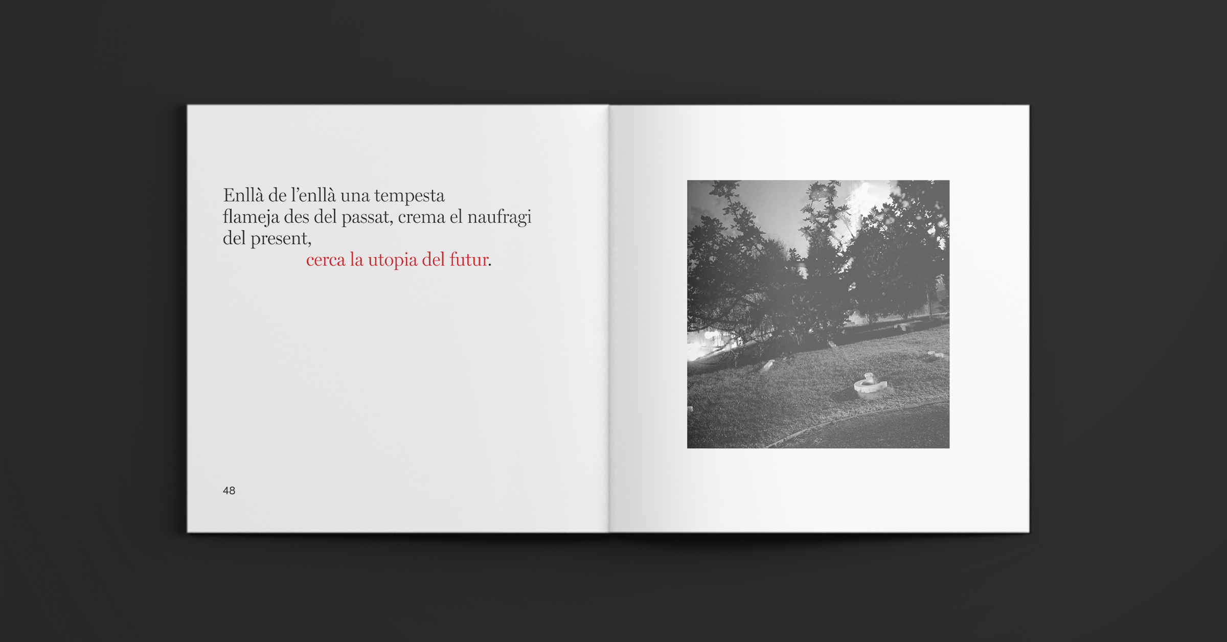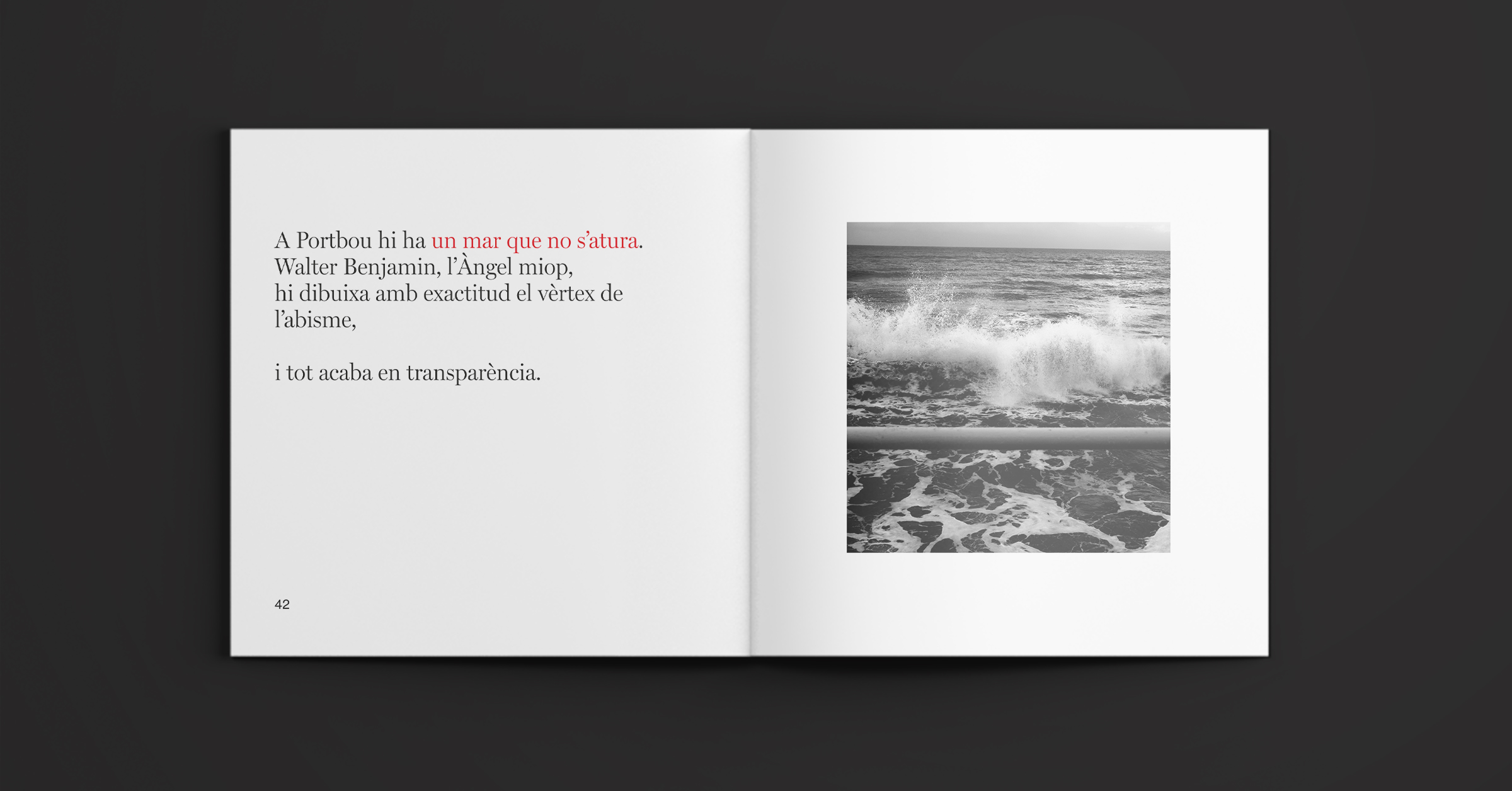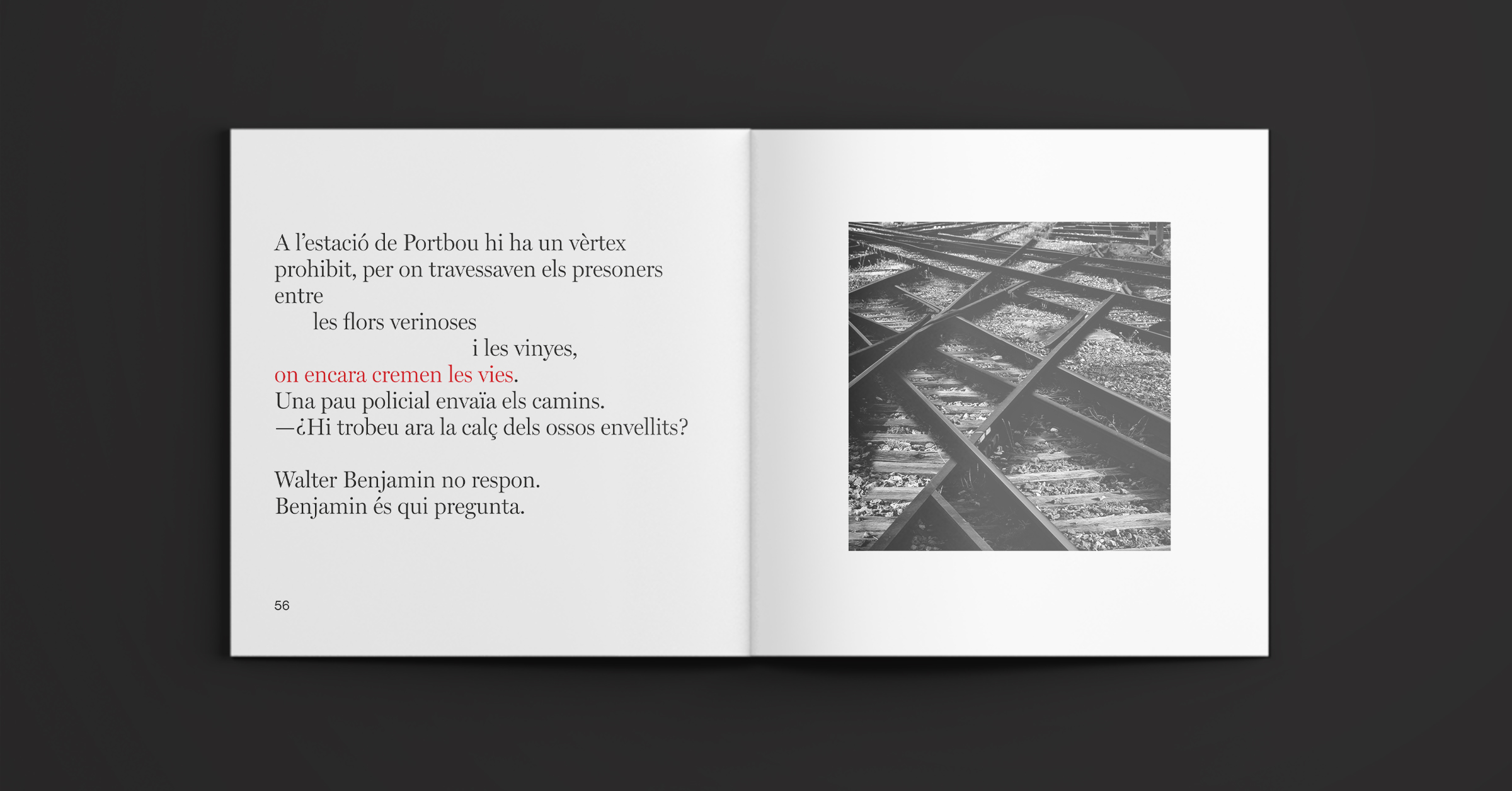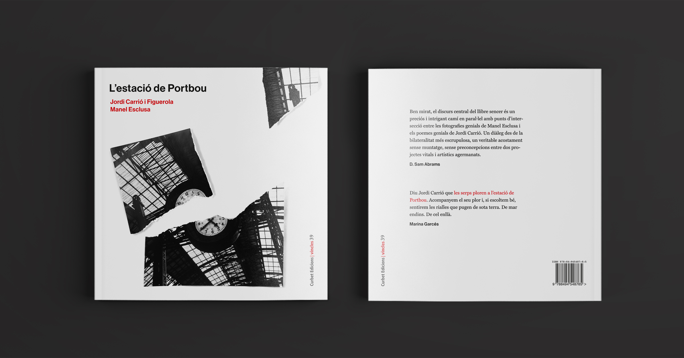 Diseño de libro del escritor catalán Jordi Carrió y el fotógrafo Manel Esclusa "L'Estació de Portbou". Es una doble edición que cuenta con una versión para bibliófilos en caja de madera de 24x24 cm y una versión normal de 21 x 21 cm. El libro combina la poesía de Carrió con las instantáneas de Esclusa. Juegos tipográficos que potencian los versos hasta convertise en imágenes dentro de la página. Poesías: Jordi Carrió | Fotografías: Manel Esclusa | Cuixart-Goday | Curbet Edicions