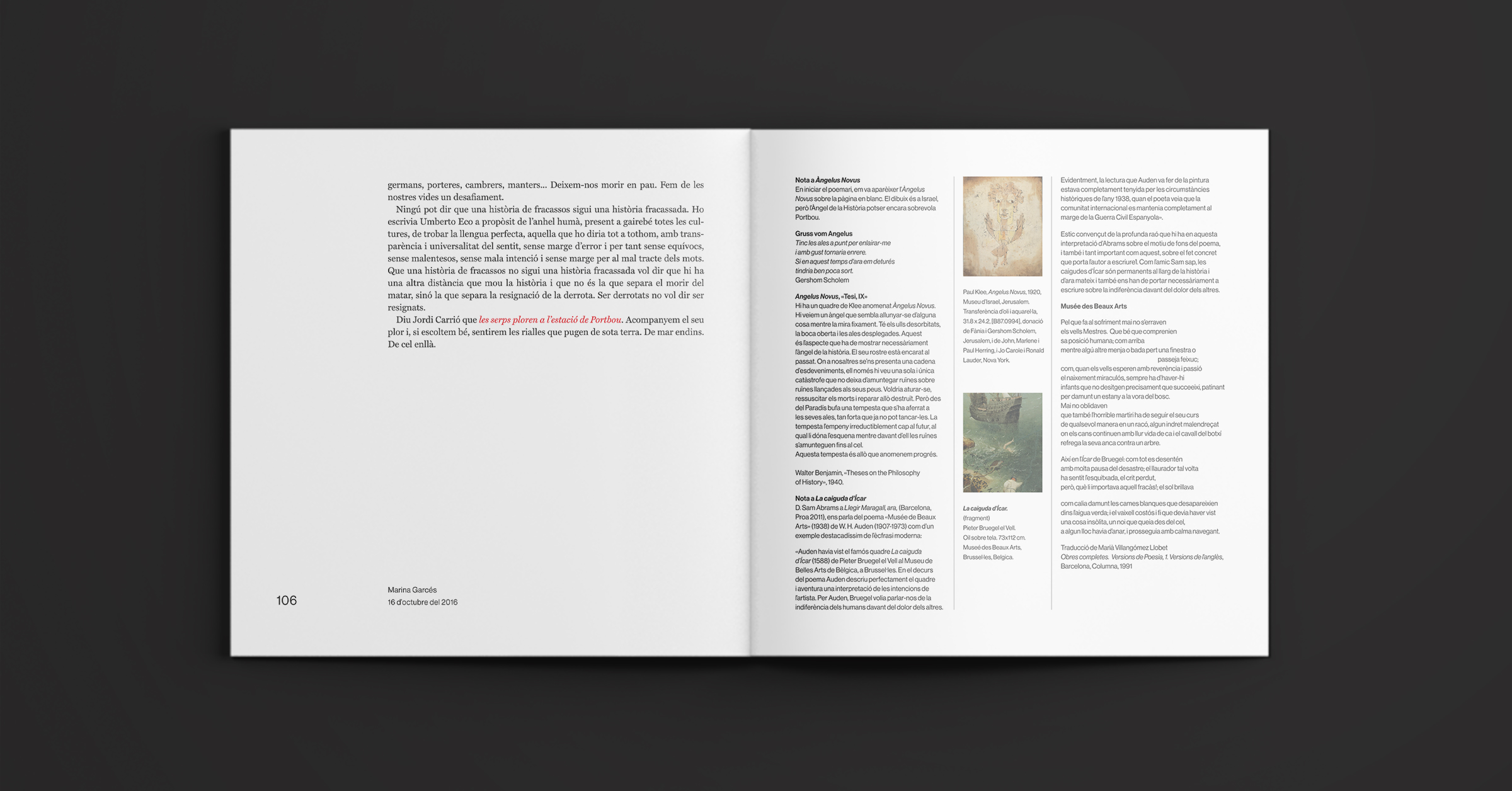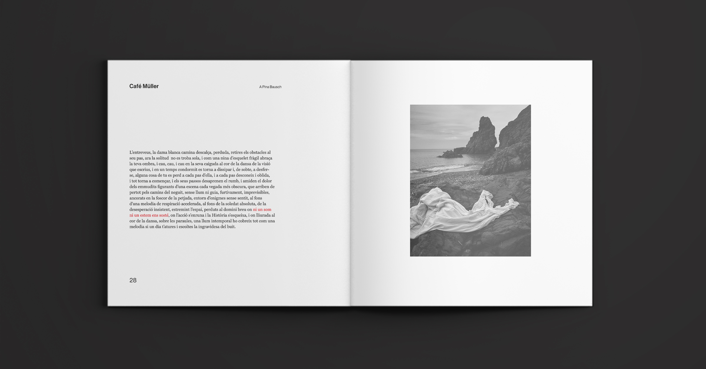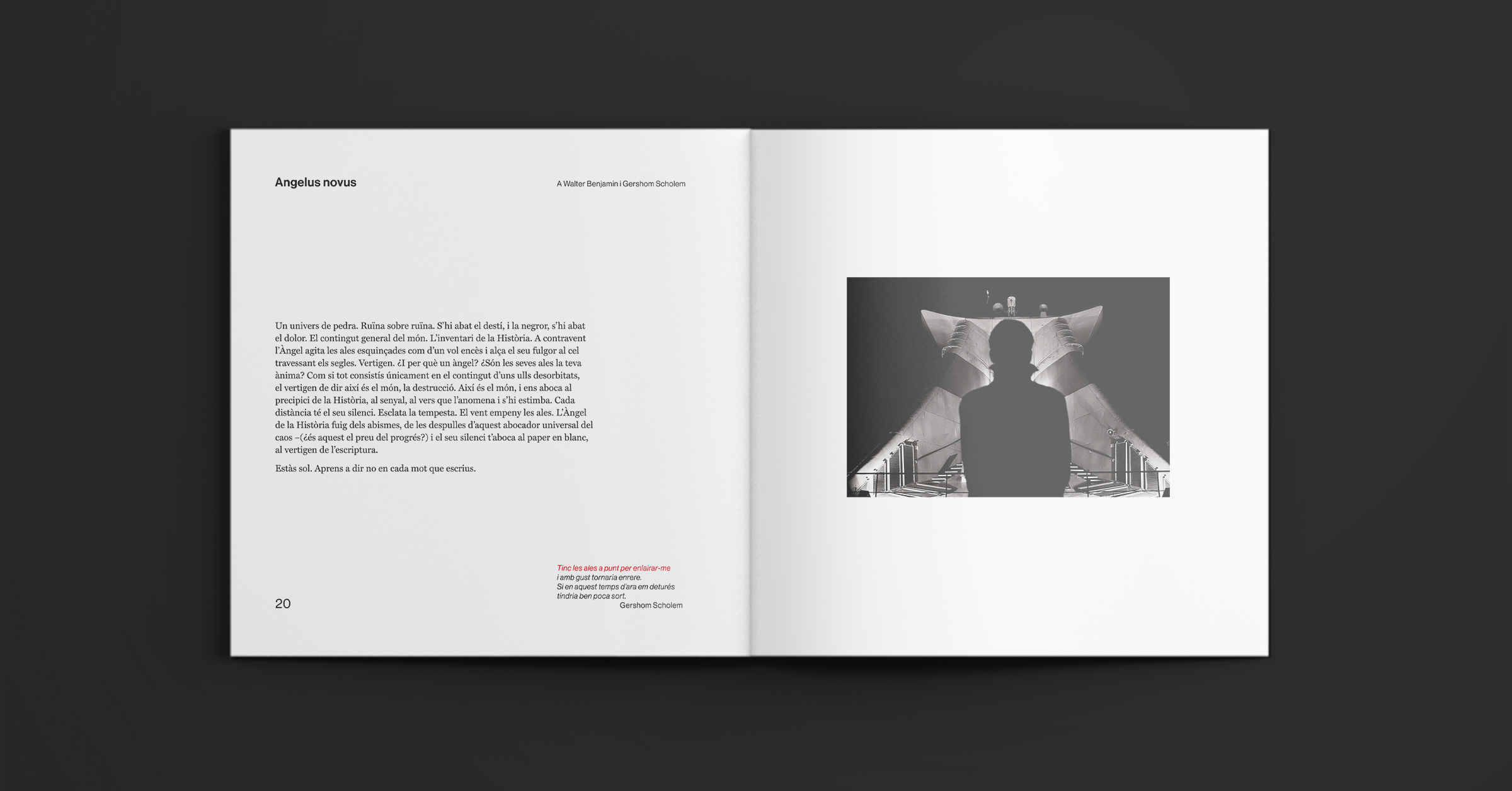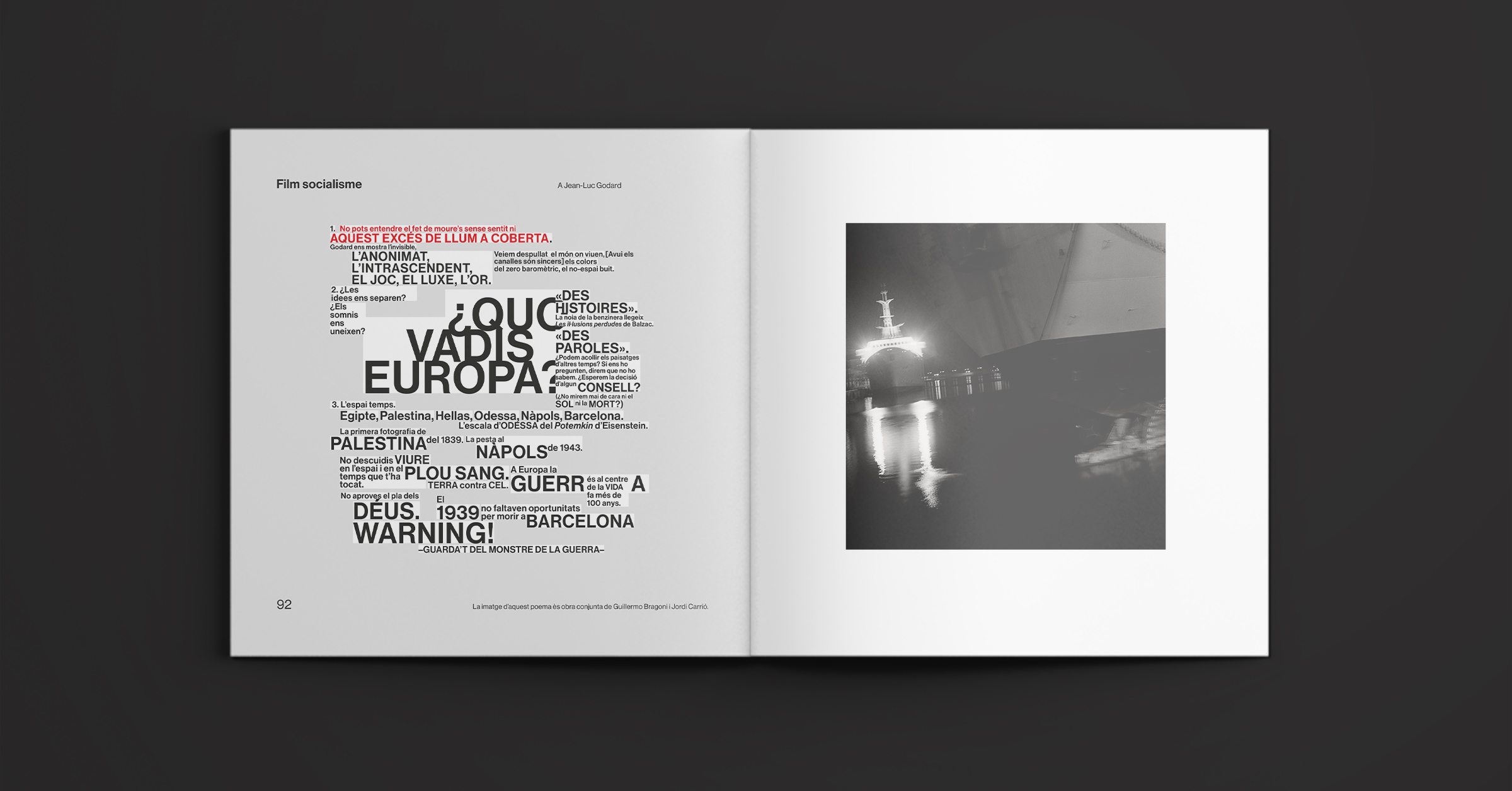 Diseño de libro del escritor catalán Jordi Carrió y el fotógrafo Manel Esclusa "L'Estació de Portbou". Es una doble edición que cuenta con una versión para bibliófilos en caja de madera de 24x24 cm y una versión normal de 21 x 21 cm. El libro combina la poesía de Carrió con las instantáneas de Esclusa. Juegos tipográficos que potencian los versos hasta convertise en imágenes dentro de la página. Poesías: Jordi Carrió | Fotografías: Manel Esclusa | Cuixart-Goday | Curbet Edicions