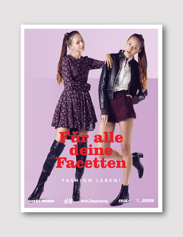 Dirección de arte de las propuestas de campañas anuales para un centro comercial ubicado en Berlín. Se realizó una sesión de fotos y se buscó en cada motivo una interacción entre la modelo y elementos característicos de cada estación.