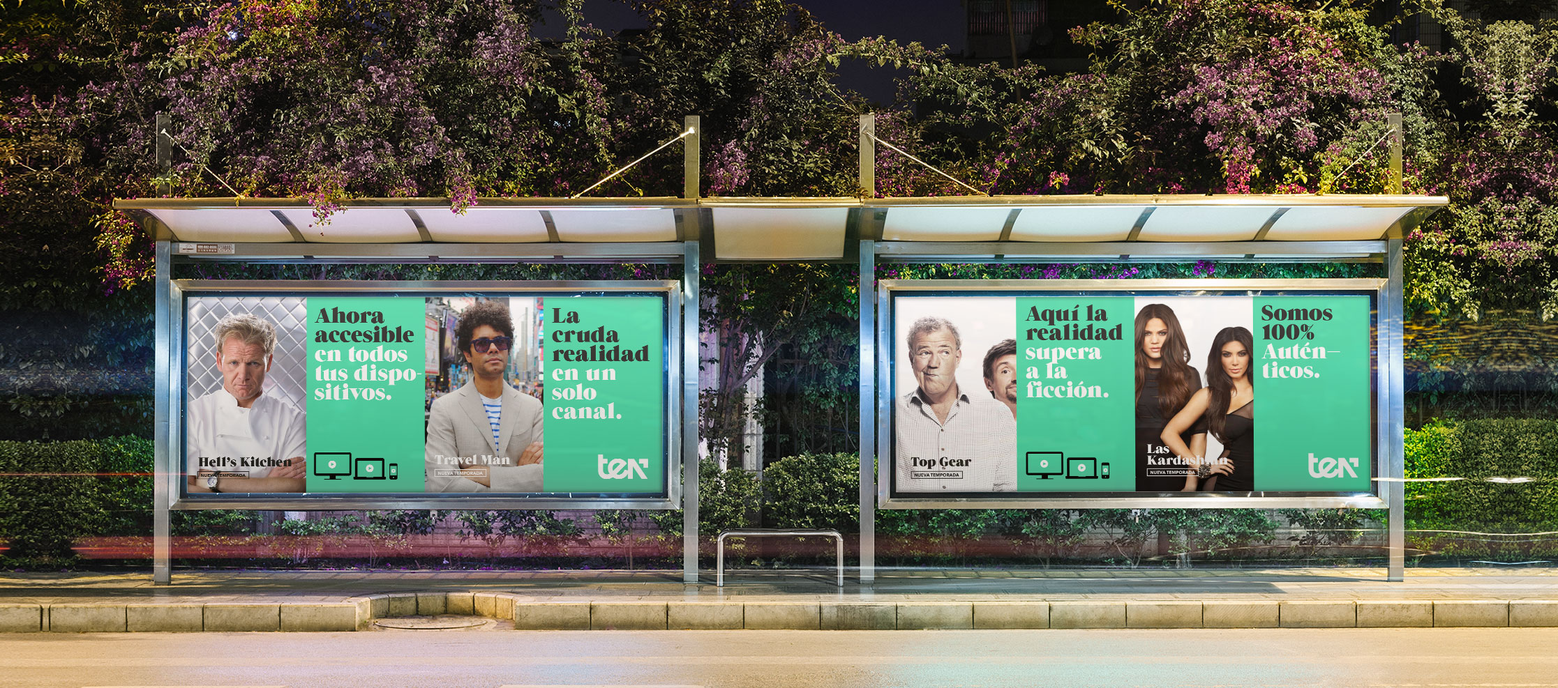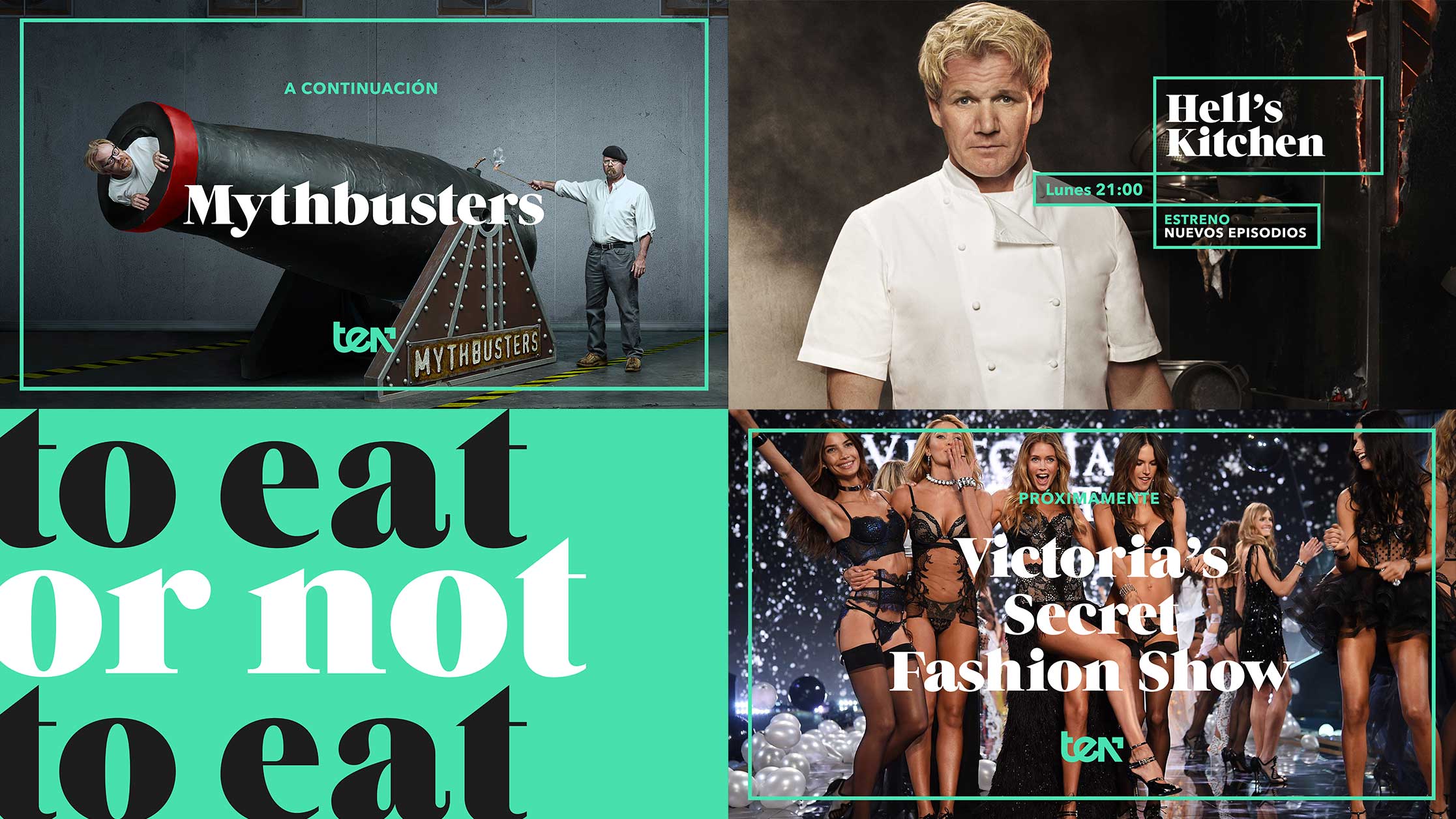 Diseño de marca y continuidad de la nueva cadena de televisión "Ten". El contenido que transmite es de tipo factual por lo que se planteó como estrategia una marca que fuera un encuadre de la realidad. Una ventana donde pueden verse desde reality shows hasta programas que ponen en riesgo la vida de sus concursantes. El sistema visual debía ser bold, llamativo, fresco y desenfadado. La tipografía toma un rol fundamental en la comunicación, es la voz que en algunos casos grita y en otros enmarca el contenido. Realizado para Studio Banana