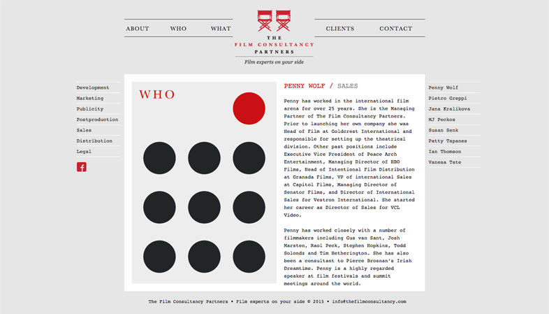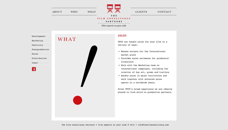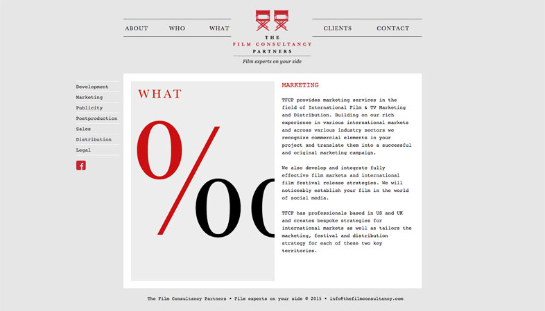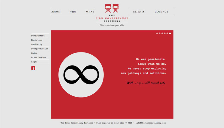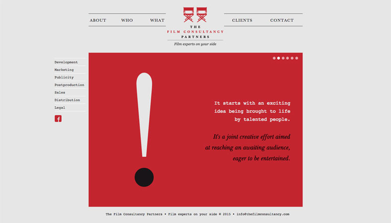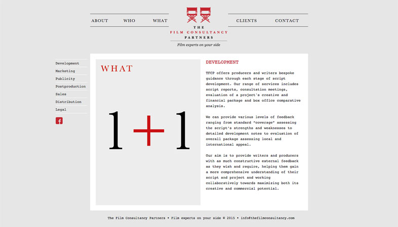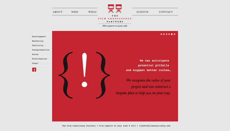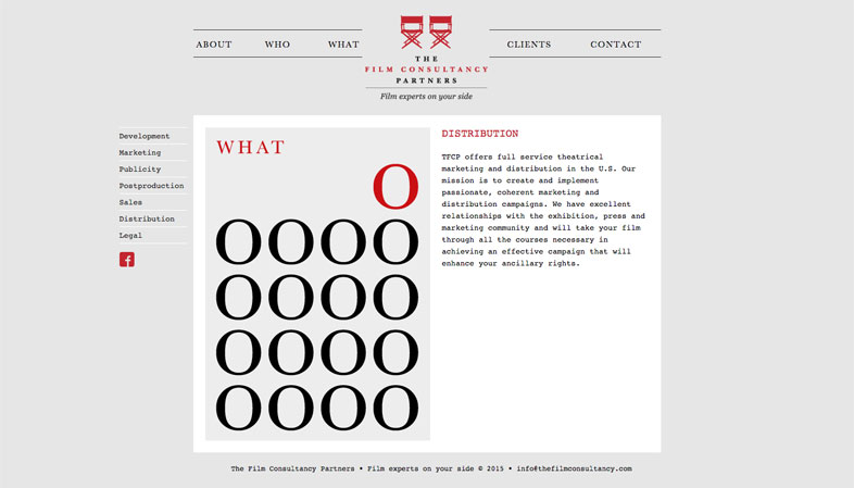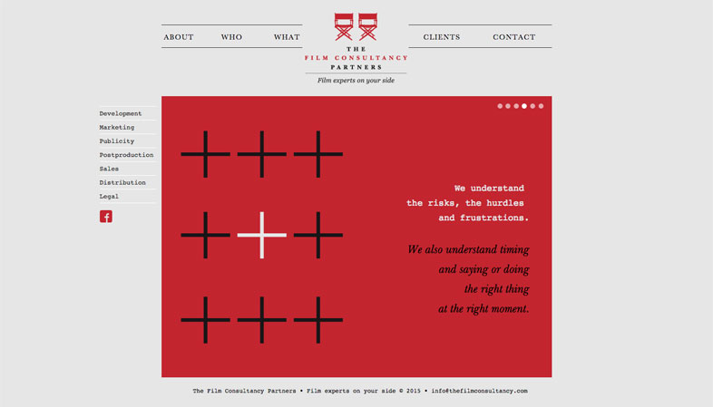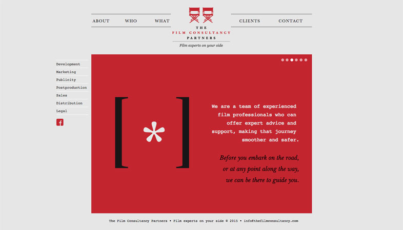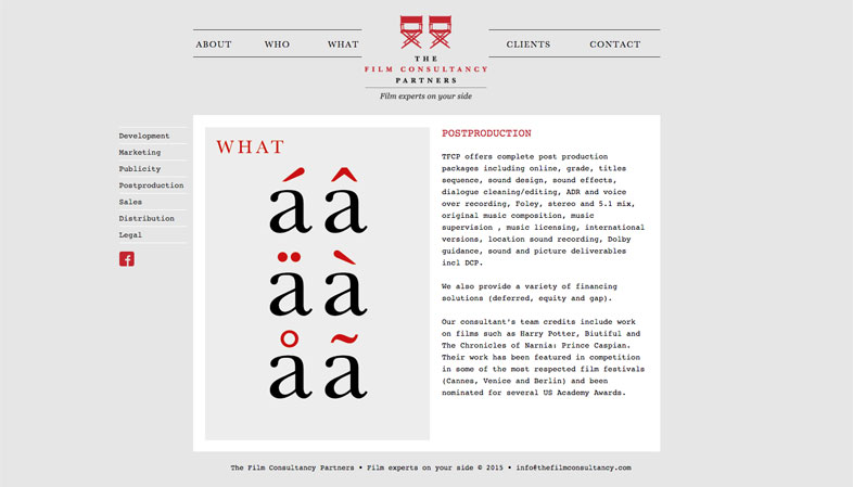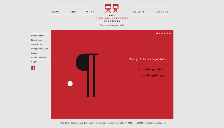 Diseño de sitio web para un equipo de profesionales especializados en la producción cinematográfica con base en Londres. La contracaja tipográfica nunca es la protagonista, así que esta vez, decidí trabajar con ella y a modo de guión de cine mudo, ilustrar tanto la introducción como cada sección del sitio. Online: thefilmconsultancy.com